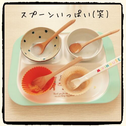 先週末から、たんぱく質を入れ始めました(^^) それも含めて前回の離乳食環境から、いろいろ変更した点があります。 この日のメニューは、10倍粥、かぼちゃペースト、バナナきなこです。 可愛い木のクマちゃんトレーじゃなくなりました(笑)品数が増えたから載…